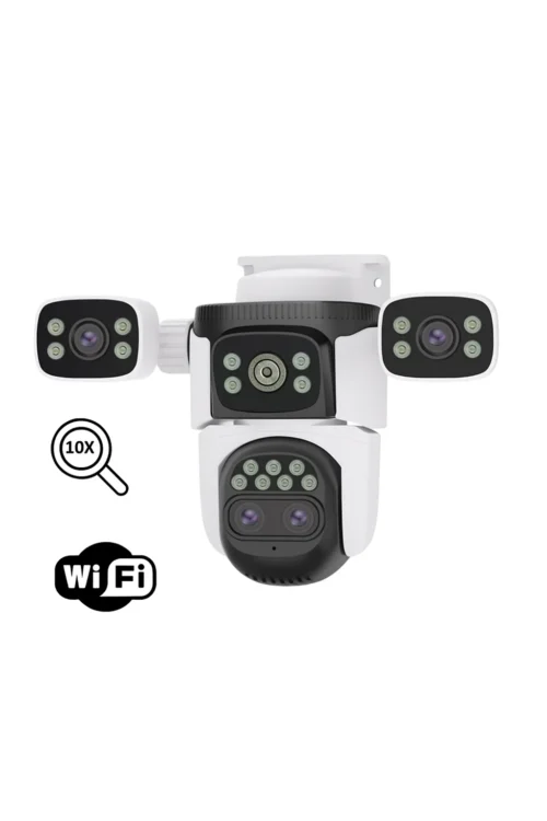 Camera de supraveghere Zoom 10X, WIFI 8K, 16MP, 4 lentile, Control din aplicatie, Comunicare bidirectionala, Urmarire automata
