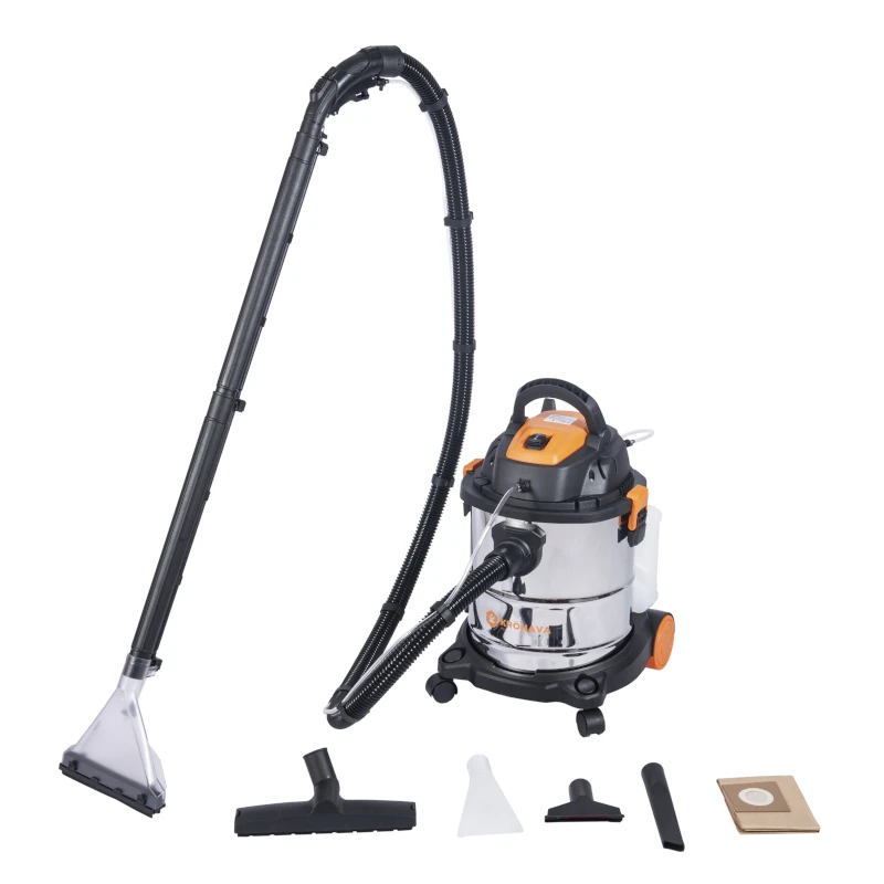 Aspiratorul de pulverizare și spălare Kronava K-MWD211 5 în 1 este soluția ideală pentru igienizarea temeinică a covoarelor, tapițeriei și scaunelor auto. Conceput pentru a acoperi o gamă largă de sarcini, aparatul funcționează atât ca aspirator umed, cât și uscat, fiind potrivit pentru utilizare în locuință, garaj sau spații de lucru. Cele cinci funcții integrate – aspirare uscată, aspirare umedă, pulverizare, suflare și curățare a filtrului – oferă flexibilitate maximă în orice situație.