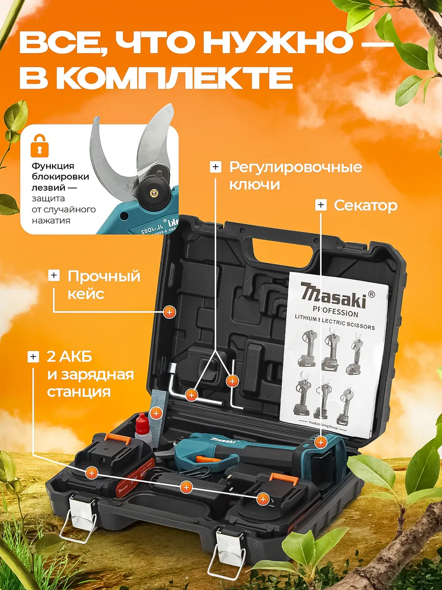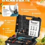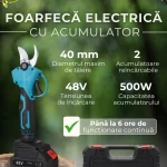 Foarfeca electrica portabila pentru Gradinarit , 2 Acumulatori , 500W, Lama din otel Carbon,2 baterie, 1 incarcator, design modern, accesorii incluse si valiza de transport, autonomie totală pina la 6 ore de lucru