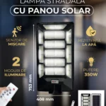 Lampa solara LED cu putere de 350W este soluția ideală pentru iluminarea eficientă a curții, aleilor, grădinii sau intrărilor. Fiecare lampă este echipată cu panou solar performant, care asigură încărcare rapidă și autonomie îndelungată.